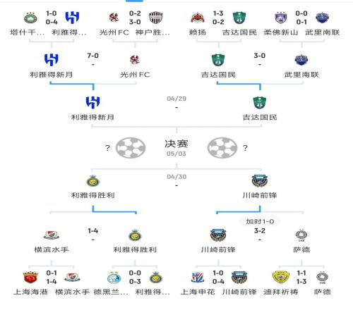 亚冠半决赛对阵:胜利vs川崎前锋,新月vs吉达国民