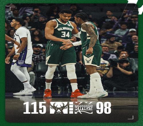 末节决战,场上风云突变。国王多点开花,得以轰出了17比3的进攻狂潮,并曾将分差迫近至3分,看到了逆转取胜的曙光。不过,字母哥携手小波特率领雄鹿轰出19比3的冲击波,重新取得19分领先。 距离终场仅剩2分21秒,密尔沃基锁定大局。萨克拉门托追分乏力,比赛随后失去了悬念。最终,雄鹿以115比98完胜对手,还拒绝了26分逆转。密尔沃基实现了2连胜,同时送给对手5连败。 字母哥率队取胜